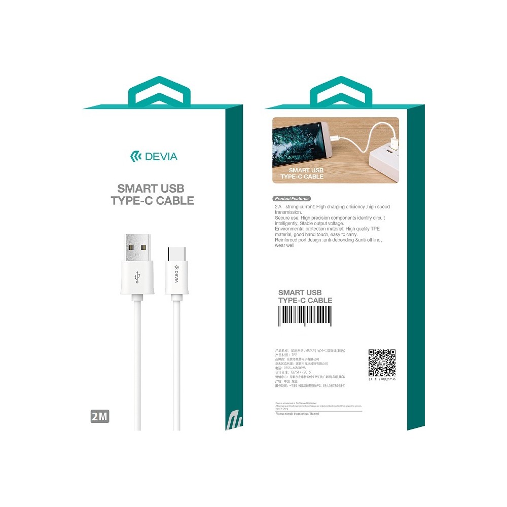 CABLE DEVIA TIPO C 2 METROS SMART SERIE BLANCO