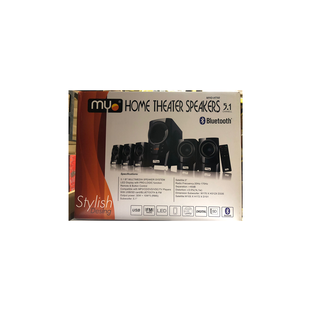 BOCINA MYO HT90, 5.1, BT V3.0, CONTROL REMOTO LECTOR SD/USB, PANTALLA LED, 80 WATTS, PRO-LOGIC, (REEMPLAZA HT80)