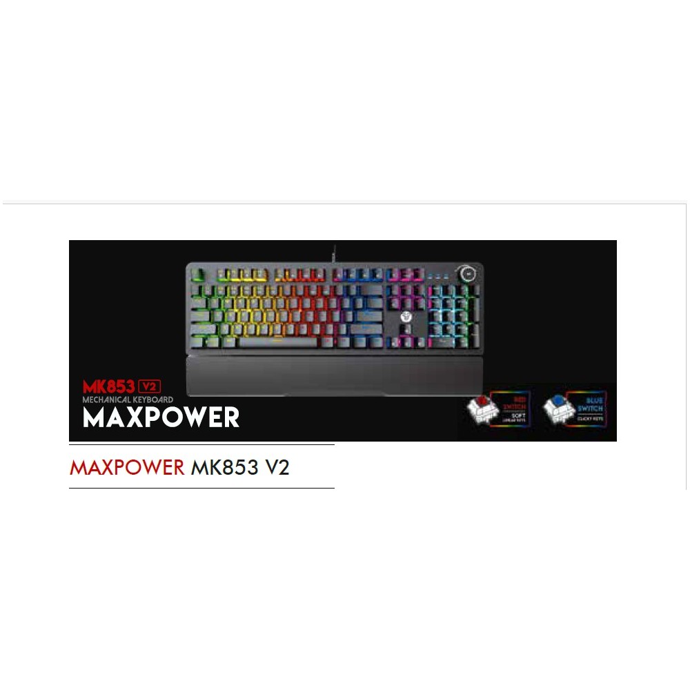 EFECTOS DE ILUMINACIÓN Con el modo 22 Spectrum para mejorar su experiencia de juego.Presione el botón FN + INS para cambiar el efecto de relámpago.TODAS LAS TECLAS ANTI-FANTASMAS Para garantizar que cada tecla que presione se registre de manera simultánea y precisa en el juego.DISEÑO DE POSICIÓN DE TECLAS ALTA Y BAJA MAXPOWER diseñado con un diseño de teclas altas y bajas para adaptar su mano. Te hace sentir más cómodo.PERILLA DE VOLUMEN DE ACCESO DIRECTO La perilla de control de volumen cilíndrica le permite controlar el volumen en una batalla de juego tensa y emocionante.REPOSO DE MUÑECA ERGONÓMICO Ofrece un apoyo cómodo ideal para largas horas en el teclado. Un interruptor mecánico evolucionado Interruptor azul Una variedad muy táctil y de “clic”. Entonces, aunque este interruptor es un poco más ruidoso que los demás, le da a la placa un poco de resistencia adicional que se activa justo antes de la activación completa, lo cual es muy satisfactorio.