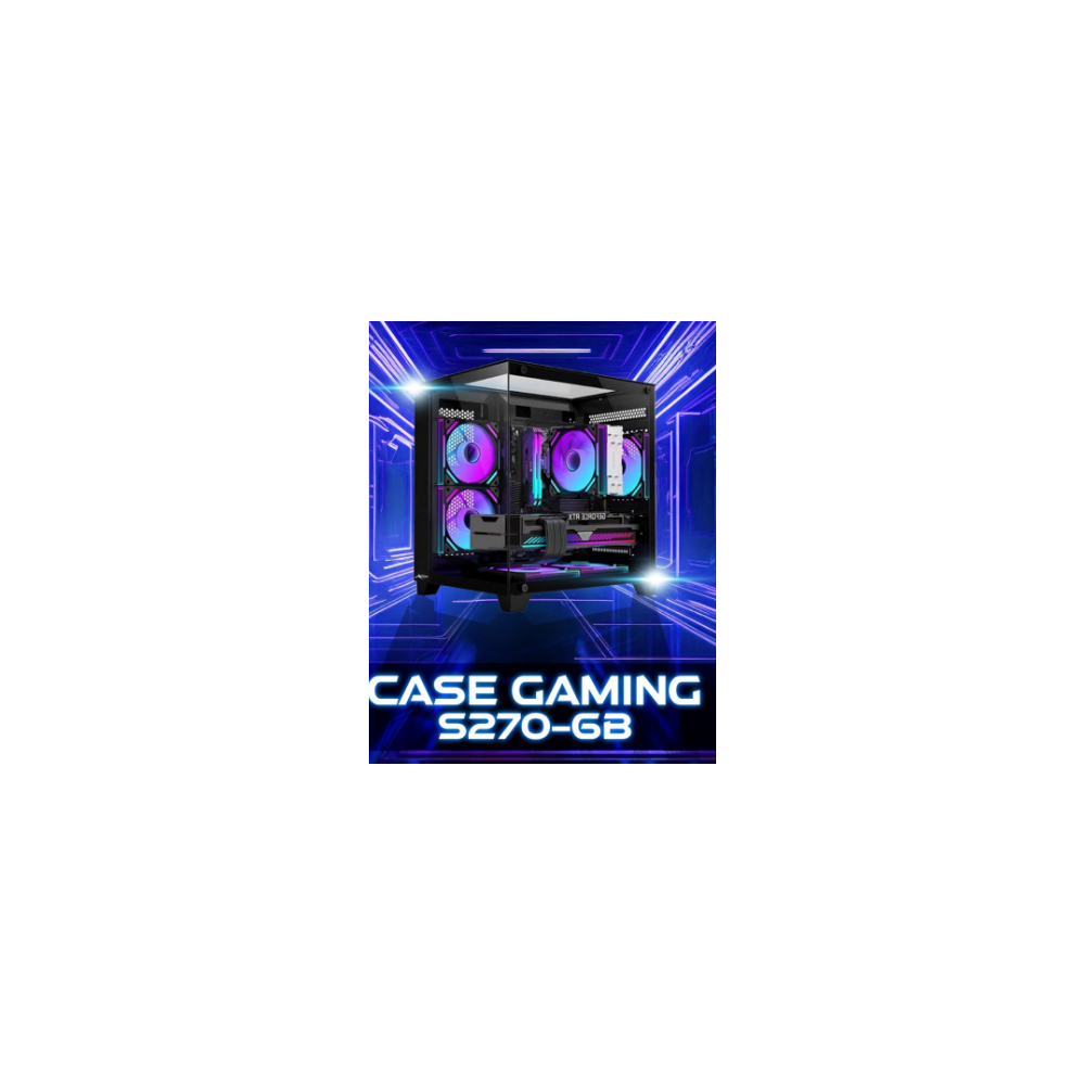 CASE GAMING (S270-6B-NEGRO)-DIMENSION 380*270*340MM, 5PCS FAN RGB-REMOTE&HUB NO POWER SUPPLY ATX